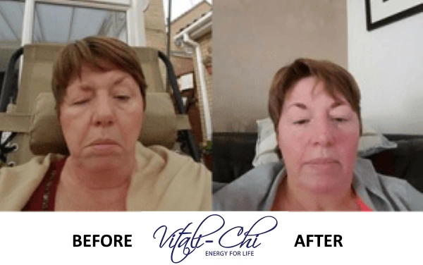 These before and after photographs, from just one Relax session with Vitali-Chi, clearly demonstrate that physical beneficial changes are achievable. This lady suffered from ‘Bells Palsy'.